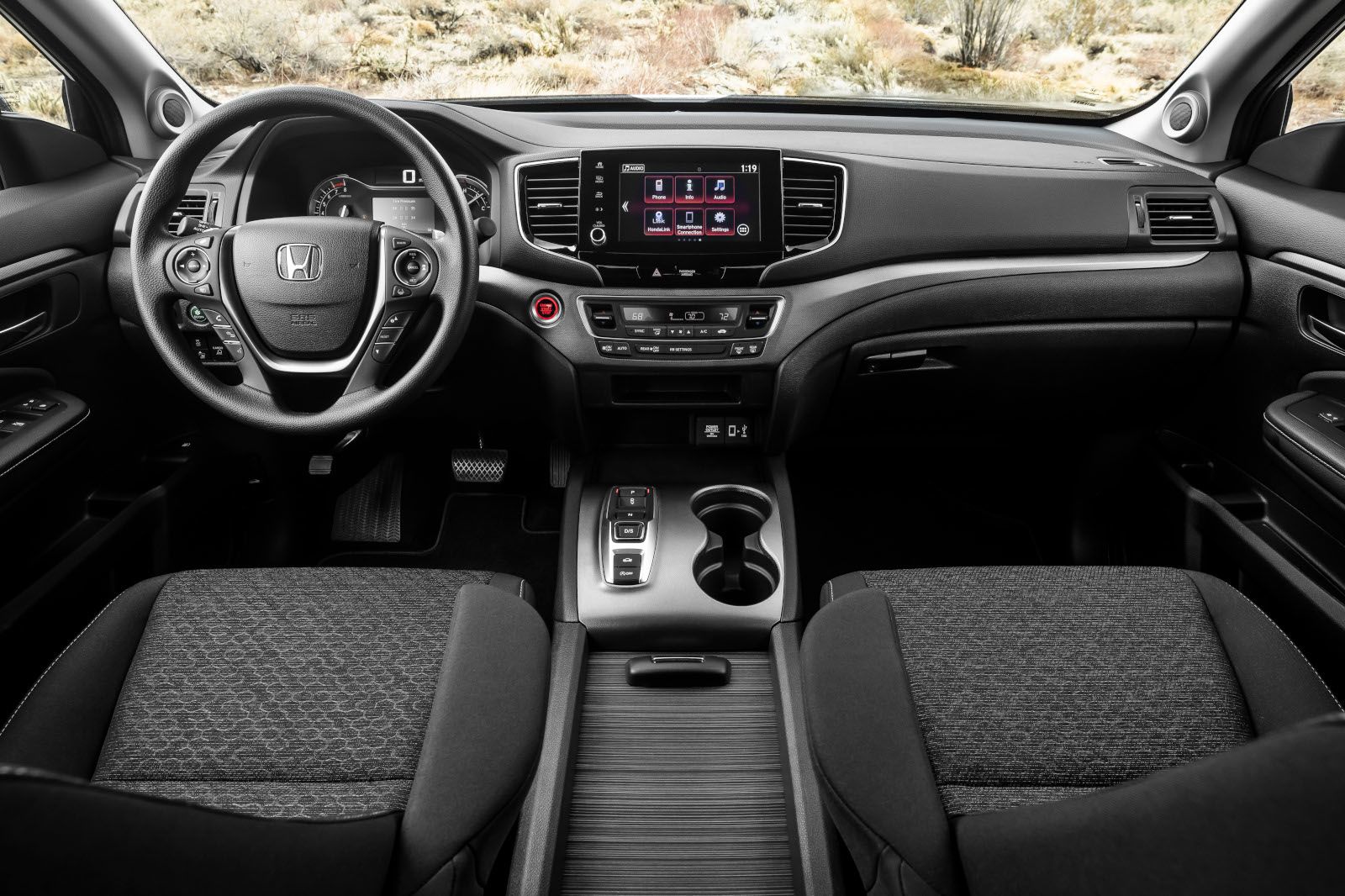 The Ridgeline includes heated front seats and heated side mirrors across all trim levels. Heated seats warm quickly, reducing the time drivers spend uncomfortable and distracted while waiting for the cabin to reach comfortable temperatures. Heated mirrors prevent ice and snow accumulation that would otherwise block critical blind spot visibility.